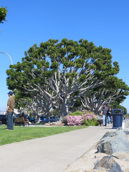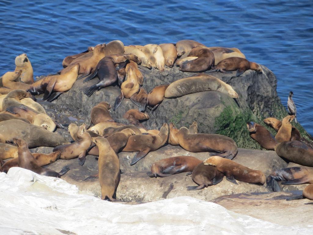 Gegen 06:00 Uhr standen wir auf (die Zwischenübernachtung in Philadelphia hat uns beim Jetlag wirklich enorm geholfen, trotz der 9 Stunden Zeitverschiebung konnten wir direkt bis 06:00 Uhr schlafen – länger wollten wir auch gar nicht, da wir tagsüber immer so viel Sightseeing geplant hatten & den ein oder anderen Sonnenaufgang sehen wollten) und packten unseren Kram zusammen. Im schrulligen aber gemütlichen „Wafflespot“ des Motels frühstückten wir sehr lecker (Apfel-Zimt-Waffeln und Naturwaffeln mit salziger Butter für Jan und ein rießiges Schinken-Eier-Käse-Omelette mit Farmkartoffeln für Tatj) und bekamen als Hotelgäste sogar 10% Rabatt. Gleich nach dem Essen setzten wir unsere Sightseeingtour fort und fuhren noch einmal in das Seaport Village, wo wir wieder einen kostenfreien Parkplatz erwischten. Früh am Morgen war es noch schön leer und wir konnten uns in Ruhe zwischen den bunten maritimen Holzhäuschen umschauen, einige ausgefallene Pflanzen und Vögel bestaunen und das Meer beobachten. Der 59miles Scenic Drive führte uns weiter in den Norden vorbei am Sealife in das Reichenviertel La Jolla. Traumhaft schöne Häuser und toll angelegte Gärten zeugten vom Reichtum der ansässigen Anwohner. Nächster Stop war der Sealrock im La Jolla Cove. Hier bummelten wir am Meer entlang und konnten unzählige Seelöwen in freier Wildbahn beobachten. Die Tiere waren so putzig, robbten übereinander her, machten einen Höllenlärm und stanken gewaltig . Schweren Herzens verließen wir nach einigen Stunden San Diego und fuhren den Highway No. 1 (nicht zu verwechseln mit dem US Highway 1 in Florida) direkt am Wasser entlang durch Carlsbad bis nach Oceanside.