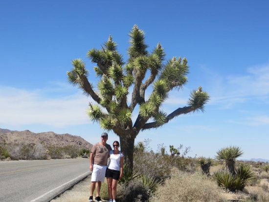 Nach dem Frühstück checkten wir aus und machten uns auf die 3-stündige Fahrt nach TwentyninePalms. Die Landschaft um uns herum veränderte sich schnell, wurde immer faszinierender. Weitläufige Sand- und Steinwüsten wechselten sich mit hohen Bergen ab, die wenigen vereinzelten Orte wurden immer ursprünglicher, cowboymäßiger, vermittelten Arizonafeeling. Hier ein Saloon, da ein ausgebeuteter Schrottplatz. Im Radio lief Countrymusik, am Straßenrand wuchsen meterhohe Kakteen, das Thermometer kletterte immer höher – wir waren von der ersten Sekunde an begeistert! Unser Hotel Sunnyvale Garden Suites war genauso traumhaft, wie wir es uns vorgestellt hatten. Die einzelnen Suiten waren wie Ferienwohnungen ausgestattet und verteilten sich großzügig auf dem Areal, welches mit den unterschiedlichsten alten Fundstücken dekoriert war. Es gab einen Whirlpool, ein kleines Fitnessstudio und einen Aufenthaltsraum mit Billard & Co. Der Eigentümer wohnt nebenan und war nach einem kurzen Anruf vom am Haupthaus angebrachten Telefon sofort zur Stelle. Auf unserer eigenen Terrasse hatten wir einen großen Grill und einen tollen Rundumblick in die Wüste. Schade, dass wir hier nur eine Nacht verbringen konnten, wir hätten hier gern eine ganze Woche ausgespannt. Um 11:00 Uhr zeigte das Thermometer bereits 38 Grad Celcius an, wir warfen uns trotzdem in unsere Wandersachen und machten uns auf den Weg in den gegenüberliegenden Joshua Tree Nationalpark. Dieser 3.200 Km² große Park besteht aus zwei Wüstenarten, der im östlichen Teil gelegenen Colorado-Wüste mit vielen Kakteen und großen Flächen Buschland und der im Nordwesten gelegenen Mojave-Wüste, die deutlich höher liegt und somit etwas kühler und feuchter ist. In diesem Teil des Parks wächst auch der Joshua Tree, welcher dem Park seinen Namen gab. Die Pflanzen, die aussehen wie Kakteen aber zu den Liliengewächsen gehören, werden bis 18 Meter hoch und bis zu 900 Jahre alt. Wir haben Glück und sind genau zu ihrer Blütezeit im Park. Zuerst wanderten wir den kurzen Oasis of Mara Trail, auf welchem wir direkt 2 Roadrunner ("Miep-Miep", leider waren sie viel zu schnell um sie zu fotografieren) und viele Eidechsen sahen. Nächster planmäßiger Halt war der Cholla Cactus Garden im Südosten. Die Fahrt war recht lang und ein großer Teil der Strecke war aufgrund von Bauarbeiten nur einspurig, wir mussten in einem Konvoi langsam einem Bauarbeiterfahrzeug hinterher tuckern. Als wir die Strapazen bei der brütenden Hitze endlich gemeistert hatten kam die große Überraschung – der Cholla Cactus Garden war aufgrund dieser Bauarbeiten gesperrt . Na super, dass hätte man uns doch auch am Eingang mitteilen können…also alles wieder zurück. Nichts desto trotz war die Fahrt spannend, wir hielten immer wieder an, liefen ein Stück in die Wüste hinein, erkletterten bizarre Felsformationen und bestaunten die großen Joshua Trees. Vom Keys View Point aus hatten wir eine fantastische Aussicht über das Coachella Tal bis nach Palm Springs. Die Wüste gefiel uns wirklich ausgesprochen gut und fasziniert uns völlig. Unterwegs sahen wir sogar einen kleinen Sandwirbelsturm. Spannend waren auch der Arch Rock, die Jumbo Rocks und vor allem der Skull Rock, der wirklich wie ein Totenkopf aussah. Am Nachmittag erreichte die Hitze jedoch einen unerträglichen Wert, zum wandern war es leider wirklich zu heiß, weshalb wir zurück ins Ort fuhren und uns in einem Supermarkt mit Grillsachen eindeckten. Zurück in unserer Ferienanlage gönnten wir uns noch ein Stündchen im Whirlpool (völlig allein mit tollem Blick auf die Landschaft – einfach toll!), nahmen eine erfrischende Dusche und schlossen den Tag mit einem echt amerikanischen Barbecue auf unserer gemütlichen Terrasse ab.