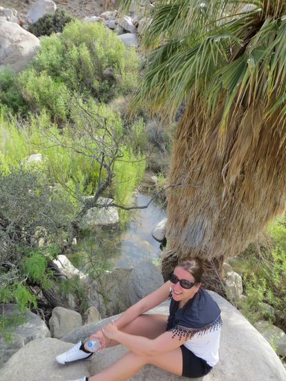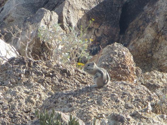 Nach einer wunderbar ruhigen und erholsamen Nacht frühstückten wir in unserer Suite und brachen dann direkt wieder auf in den Nationalpark, um die aufgrund der Hitze gestern verpassten Wanderungen nachzuholen. Wir hatten uns den 49Palms Oasis Trail vorgenommen. Die Wanderung war spannend, die Temperaturen angenehm und wir hatten viel Spaß. Insgesamt waren wir ca. 2,5 h Stunden unterwegs, sahen viele Eichhörnchen, Eidechsen und sogar einen winzigen Kolibri. Es war wirklich faszinierend wie sich im Nichts aus Sand und Stein urplötzlich eine Oase mit 49 rießigen Palmen auftat. Lustig war auch eine Gruppe amerikanischer Touristen, die uns auf unserem Rückweg entgegen kam und völlig außer Puste fragte: „Behind this rock is the Margarita-Bar, right?“
