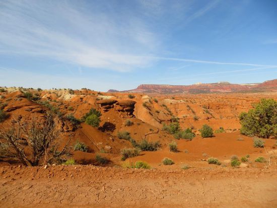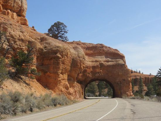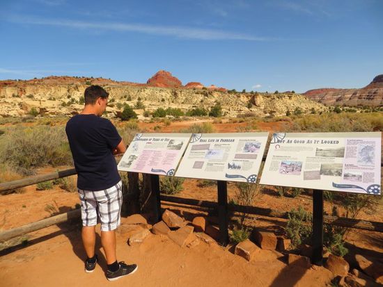 Die Nacht war diesmal leider etwas hellhörig, nichts desto trotz brachen wir nach einem sehr einfach Frühstück zeitig auf in Richtung Bryce Canyon. Nach wenigen Kilometern passierten wir wieder die Grenze nach Utah und verloren dadurch eine Stunde. Wir ließen uns trotzdem Zeit und machten viele Stopps in der tollen bunten Felslandschaft. Am Grand Staircase Escalante National Monument kletterten wir ein Stück einen Hikingtrail in Richtung der Toadstools entlang, einige Kilometer weiter fuhren wir eine Schotterstraße zur Pahreah Town Site. In der unglaublichen Bergkulisse stand früher eine kleine Westernstadt, die durch Flash Floods zerstört wurde. Ein großes Problem in der Wüste – es regnet nicht oft, aber wenn, dann schüttet es wie aus Kübeln und der ausgetrocknete Boden kann das Wasser nicht aufnehmen – es kommt zu Sturzfluten. In den 60er-Jahren nutze man dieses schöne Fleckchen Erde als Filmset für bekannte Westernklassiker, doch auch dieses wurde überflutet. Wir genossen die schöne Landschaft, schauten uns die verbliebenen Ruinen an und freuten uns, dass selbst hier mitten in der Pampa ein Plumpsklo und ein Infokasten mit Gästebuch und Infoflyern zu finden war – das hatten die Amis wirklich drauf! In Kanab schauten wir uns ein wenig in dem idyllischen Westernstädtchen um und machten eine kurze Rast bei Subway. Die Landschaft auf unserer Fahrt veränderte sich von den bunt-roten Sandsteinen und Felsen der letzten Tage immer mehr in gold-gelbe Wüsten und Hügel. Je Höher wir fuhren, desto Grüner wurde es um uns herum. Wir fuhren durch den Dixie National Forest und den Red Canyon und ärgerten uns grün und blau, dass wir für die vielen Sehenswürdigkeiten hier nicht mehr Zeit eingeplant haben. Heute sind wir den absolut schönsten Teil der Strecke gefahren, ständig gab es Neues zu entdecken, überall führten Wanderwege durch Traumlandschaften. Hier konnte man gut und gern ein, zwei Wochen in der Natur verbringen. Auch das Capitol Reef und Monument Valley mussten aus Zeitgründen von unserer Route gestrichen werden – 1.000 Gründe irgendwann mit viel mehr Zeit im Gepäck zurückzukommen (am liebsten natürlich mit unserem Jolly Sprinter).