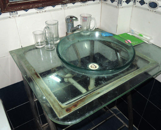 Was dann aber auf uns wartete, ärgert uns immer noch. Mal abgesehen davon, dass unser Zimmer fensterlos war, mit einem Einzelbett und einem kleinen Doppelbett, keines der Ausstattungsmerkmale zutraf (noch mal zur Erinnerung, wir buchten bei booking.com), winzig klein war und allerlei Tierchen beherbergte, wurde hier wohl noch nie geputzt. Der Boden war voll mit Haaren von Vorgängern und an den wenigen Möbeln (Bett, Schrank, Stuhl) türmte sich eine hohe Staubschicht. Der Kühlschrank (der keine Minibar war) roch nach verfaultem, schimmeligen Essen und verströmte schon nach kurzem Öffnen seinen Duft im ganzen Raum (ohne Fenster - keine Chance zum Lüften). Unser Einwand, wir hätten die Deluxe Suite gebucht, entlockte dem Hotelier nur ein müdes Lächeln und die Worte: "Die wird morgen frei, dann können wir umziehen."
