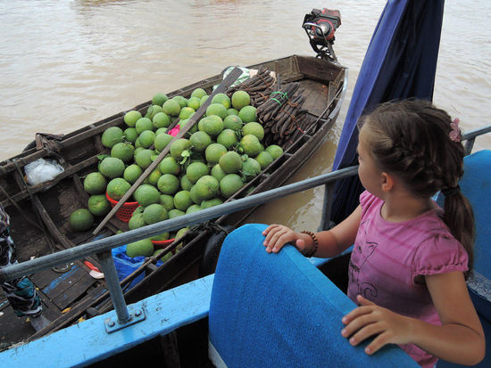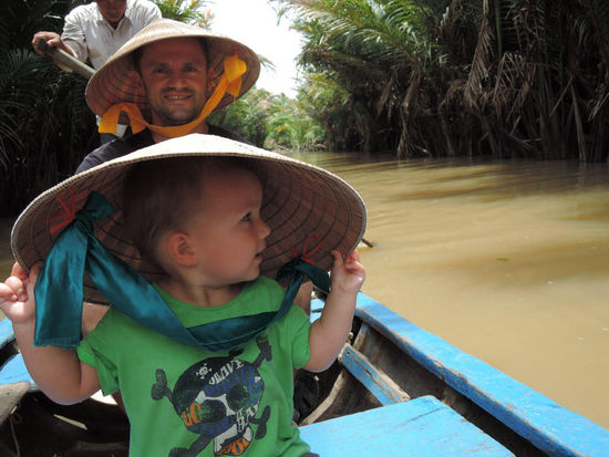 Wir probierten leckeren Honigtee auf einer Bienenfarm, fuhren mit Ruderbooten durch die Mangroven und Palmwälder, besuchten eine Open-Air-Bonbon-Fabrik (Süßigkeiten aus Kokos) und ließen uns durch die verzweigten Arme des Mekongs zu den schwimmenden Dörfern schippern.