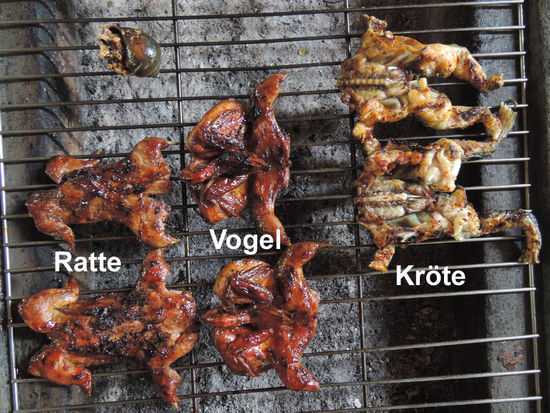 Auf der Speisekarte standen diesmal auch Schlange, Frosch und Ratte - vorher lebend zu begutachten. Wir probierten nichts davon und blieben lieber bei exotischen Früchten.
