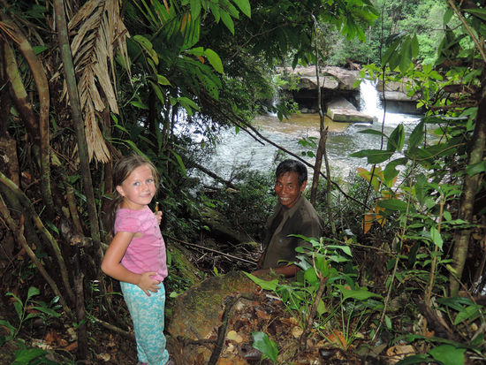 Wir buchten erstmal die einzige Feiertags-Möglichkeit von Phnom Penh nach Süden ans Meer - einen Privatfahrer. Nach ein paar Tagen am Strand von Sihanoukville (Otres Beach), fuhren wir Richtung Westen an die thailändische Grenze (auch hier zwangen uns die Feiertage zu teureren Fortbewegungsmitteln). In Koh Kong, kurz vor Thailand, erlebten Fine und Mirko noch ein paar ausgiebige Stunden im Mangrovensumpf und tiefen Dschungel. Hier gab es dann auch endlich die erhoffte Begegnung mit "wilden, gefährlichen Tieren" (1 Centipede - hochgiftig und angeblich äußerst aggressiv, 1 Schlange - giftig aber nicht aggressiv, 1 Spinne - riesengroß aber harmlos).