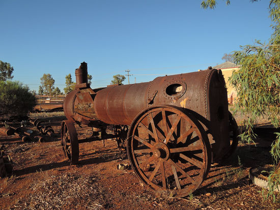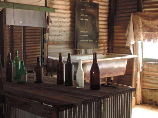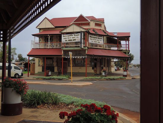 Der letzte Ort war einfach nur ein Ort, aber jetzt… Befinden wir uns in einer Filmkulisse? Wir fuhren die leere Straße entlang und erwarteten jeden Moment den Regisseur schreien: „Raus aus dem Filmset, wir drehen!“ (auf Englisch natürlich). Aber nichts dergleichen geschah. Neugierig schauten wir uns um und überlegten, ob wir in die Läden hineingehen können oder ob sich hinter der Tür einfach nichts außer Wüste verbirgt. Die Häuser stehen hier seit über hundert Jahren unverändert. Diese Stadt lebt aber. Die Läden sind echt, das Polizeirevier, die Post, die Bar mit den halbnackten Tänzerinnen, die Goldschätzgeschäfte. Jetzt fehlten nur noch die Cowboys und Goldsucher. Alles andere war vorhanden – die Pferde, alte Eisenbahnen und Kutschen, Gebäude aus vergangen Zeiten, die typischen Straßenzüge aus den Wildwest-Filmen mit ihren Menschen, die tatsächlich hier lebten. Wir sind in Australiens „Golden Outback“. Mitten in der Wüste arbeiten hier bei enormer Hitze tausende Menschen in den verschiedensten Minen. Nach getaner Arbeit gehen sie in den Saloon (hier: Pub oder Bar) und lassen sich ihr Bier schmecken. Und wir sind mitten drin – im Goldrausch – in den Goldfields von Westaustralien – am Rande des Outbacks. Fährt man hier einige Meter Richtung Osten aus den Goldgräberstädten hinaus, landet man in der Wüste. Fährt man 1000 km weiter, ist man immer noch in der Wüste.