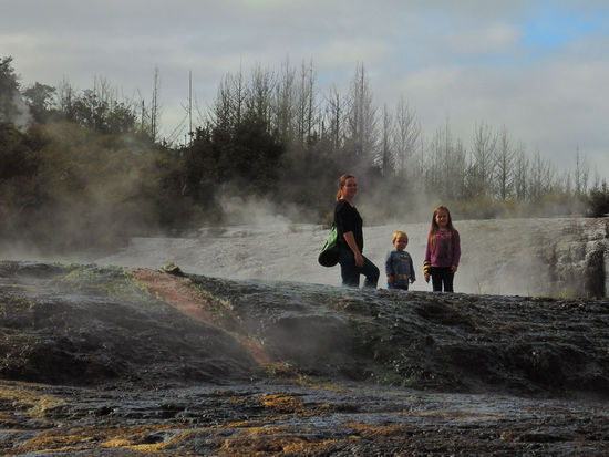 Regen peitscht uns ins Gesicht. Sturm wirbelt alles umher, was sich nicht irgendwo festklammern kann. Der kurze Gang vom Van zum Toilettenhäuschen lässt sich nur mit Mühe bewältigen. Das Atmen fällt uns schwer bei diesem heftigen, kalten Wind hier oben. Dabei stehen wir noch ganz am Anfang unseres großen Abenteuers. Wir blicken durch die tropfnassen (von außen und innen) Fensterscheiben unseres schaukelnden Vans in die Dunkelheit. Jeder noch so kleine Versuch, den Vulkan oder irgendein Teil des Tongariro Gebietes zu erblicken, bleibt erfolglos. Der komplette Nationalpark liegt unter einer dicken Wolkendecke. Während die erste Helligkeit des Tages langsam das ganze Ausmaß des wütenden Sturmes preisgibt, geben wir auf und fahren davon. Einige Irre gehen trotzdem los. Dabei war gestern ein wolkenloser Tag. Sonnenschein pur, als wir in „Mordor – der Heimat des Bösen“ einen atemraubenden Spielplatz fanden. Von wegen, „Herr der Ringe“ ist nur was für Erwachsene. Auf der Suche nach Höhlentrollen und Orks erweckte unsere Phantasie Mordor zu neuem Leben…