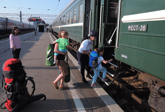 Ein bisschen war es für uns, wie ein „Nachhausekommen“ – der Einstieg in die Transsibirische Eisenbahn. Wir freuten uns alle auf eine weitere erlebnisreiche Fahrt. Niemand von uns ahnte, dass diese Fahrt so ganz anders wird als die erste. Wir landeten im Touristenzug. Fine und Willi waren die einzigen Kinder. Die westlichen Touristen (meist über das mittlere Alter hinaus) fragten sich wohl, was wir hier mit zwei Kindern wollen. Kein Abteil war mit Russen besetzt. Statt wildem und lautem Treiben auf dem Gang, neugierigen Fragen trotz Sprachbarrieren und Gerüchen aller Art – vornehme Ruhe, zögerndes Lächeln und verschlossene Türen. Hier kauft man sich vier Betten für zwei Personen und ist so ungestört im Abteil. Nur, wenn laut Reiseführer ein lohnendes Fotomotiv erschien, strömten sie in den Gang und besetzten mit ihren Kameras die Panoramafenster, die im „alten Zug“ dazu genutzt wurden, um sich und seine Gedanken mit anderen auszutauschen.