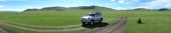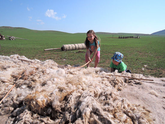 Kaum eine Stunde entfernt von der Hauptstadt wandelte sich das Bild. Weite Wiesen, am Horizont unterbrochen von Bergketten. Pferde-, Kuh-, Ziegen- und Schafherden grasten friedlich ohne von Zäunen aufgehalten zu werden. Mal hier und da ein Reiter. Falken, Bussarde und Milane zogen ihre Runden. Fine und Willi konnten sich für keine Fensterseite entscheiden. Überall war alles schön und aufregend. Ach ja, bevor wir das vergessen, da es für uns schon seit Russland zur Normalität gehört: Hier reist man auch im Auto frei ohne Kindersitze und Gurte. Unsere anfänglichen Bedenken änderten daran auch nichts. In unserem Jeep (Fahrer und Guide vorn, Familie Nemitz hinten) wählten Fine und Willi ihre Plätze ständig neu. Mal rechts am Fenster, mal links am Fenster, mal in der Mitte oder bei Mama oder Papa auf dem Schoß, vorwärts oder rückwärts.