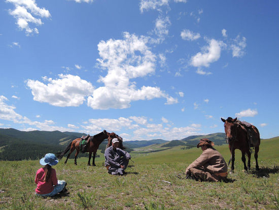 Jedes Tagesziel bot andere Überraschungen. Mal war es eine Trekkingtour auf dem Rücken der Pferde, mal badeten wir in heißen Quellen, ritten auf Yaks, wanderten über Blumenwiesen, bestiegen Berge, beobachten Przewalski-Wildpferde aus der Nähe, ritten auf Kamelen durch Sanddünen oder spielten einfach nur vor der Jurte.
