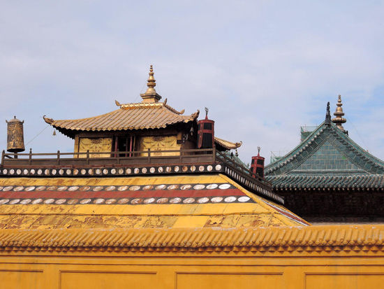Früh am Morgen kamen wir mit der Transsibirischen Eisenbahn in Ulaanbaatar an. Zulbaya (Spitzname „Zula“), ein schräger Typ mit Cowboyhut und unser Guide für die nächsten zwei Wochen, begrüßte uns am Bahnsteig mit einem herzlichen Lächeln. Seine ersten Worte (auf deutsch) waren: „Legt eure Uhren ab, entspannt, genießt, wir haben Zeit.“ Toll, genauso sollte es sein. Auch unser Fahrer, Batbold (Spitzname „Baagi“), stand schon mit seinem Auto (natürlich ein großer Geländewagen) vor dem Bahnhof. Nach einem stärkenden Frühstück zeigten sie uns ihre Stadt. Auf der Fahrt durch die Hauptstadt nahmen wir Ulaanbaatar erstmal richtig wahr. Trotz der Hitze ließen wir die Autoscheiben lieber geschlossen. Eine stickige Mischung aus Abgasen und verbrannter Kupplung lag in der Luft. Massen von Autos, Motorrädern und Menschen drängten sich Stück für Stück vorwärts auf den Straßen. Ein regelrechtes Hupkonzert übertönte alle anderen Geräusche – damit sagt man hier: „Ich hab Vorfahrt!“ oder „Pass auf, ich überhol dich jetzt von links oder rechts!“ oder „Bleib stehen, jetzt fahrt ich!“ Verkehrsregeln scheint es in Ulaanbaatar nicht zu geben. Von starker Hitze zu Starkregen und Überschwemmungen in der ganzen Stadt war es nur ein Augenblick. Das Wetter änderte sich im Minutentakt. Zwischen den Automassen im täglichen Stau huschen immer wieder Frauen, Männer und Kinder über die Straße. Ein gefährliches Spektakel finden wir, denn selbst Zebrastreifen und Fußgängerampeln sind nur Deko. Schilder, Orientierung, Verständigung, Schrift und Aussprache – eine echte Herausforderung in den ersten Stunden. Wir waren froh, Zula und Baagi an unserer Seite zu haben. Schon von Deutschland aus buchten wir über KiaOra-Reisen eine mögliche Route durch die Mongolei mit Fahrer und Guide. Auch im Gandan Kloster zeigte sich, dass es die richtige Entscheidung war. Ohne Zula hätten wir niemals erfahren was hier alles vor sich geht, z.B. dass man nur im Urzeigersinn die „murmelnden“ Mönche umrunden darf. Und ohne ihn säßen wir kurz später wohl auch nicht direkt hinter den Mönchen, um ihre Arbeit zu beobachten und ihren Gesängen und Gebeten zu lauschen. Doch Foto- und Filmversuche ahndeten die Mönche sofort mit deutlichen Ermahnungen.