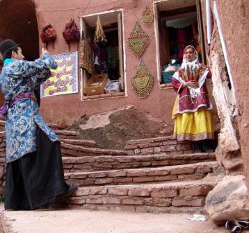 Anschliessend fahren wir nach Abyaneh über eine kurvenreiche Strasse, welche in Abyaneh endet. Der Ort ist in ganz Iran wegen seiner Einwohner bekannt, die auch lange nach der Islamisierung der Lehre Zarathustras treu blieben. In ihrer Abgeschiedenheit am Nordabhang des Karkas-Gebirges haben die Bewohner ihre Eigenheiten behalten. Sie sprechen einen altertümlichen Dialekt; die Frauen tragen keinen Chador. Die Häuser winden sich den Berg hinauf, die Dächer der unten liegenden bilden die Wege der darüber gebauten. Die Menschen vor Ort sind freundlich und auch ein wenig geschäftstüchtig. Sie verkaufen gern selbst gebastelte Gegenstände und getrocknetes Obst.