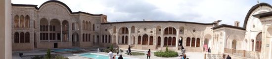 Direkt nebenan folgt das Khane-ye Boroudjerdiha, das Herrenhaus einer Kashaner Kaufmannsfamilie aus dem 19. Jh. Um einen Innenhof mit Wasserbecken und kleiner Gartenanlage gruppieren sich die zweistöckigen, teils offenen Gebäudetrakte, die mit Holztüren verschliessbar sind. Der überkuppelte Hauptempfangssaal ist besonders aufwendig dekoriert, auf die Kuppel ist eine kunstvolle Kombination von Lichtöffnung und Wind Turm aufgesetzt.