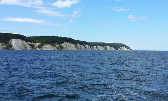 Hinter Sassnitz tauchen wir in den hügeligen Buchenwald (UNESCO-Welterbe) der Stubnitz im Nationalpark Jasmund ein. Unser Ziel sind die berühmten Kreidefelsen mit dem Königstuhl und den Wissower-Klinken. Kurz vor dem Ziel müssen wir unseren Motorrollern eine Pause gönnen. 3 km Wandern oder Shuttlebus sind angesagt. Wir entscheiden uns für Alternative 2, da sich Motorradklamotten bekanntlich nicht wirklich für sportliche Aktivitäten eignen. Der Königstuhl erhebt sich malerisch 117m über der Ostsee. Auf der schon vor Jahrhunderten angebrachten Aussichtsplattform haben wir einen traumhaften Blick auf die fast senkrecht verlaufende Steilküste, die umgebende Waldlandschaft und die weite See. Tip: Wer konditionsstark ist, kann auch zu Fuß an den Steinstrand absteigen. Aber Vorsicht - man muss die 412 Stufen auch wieder hinauf!!
