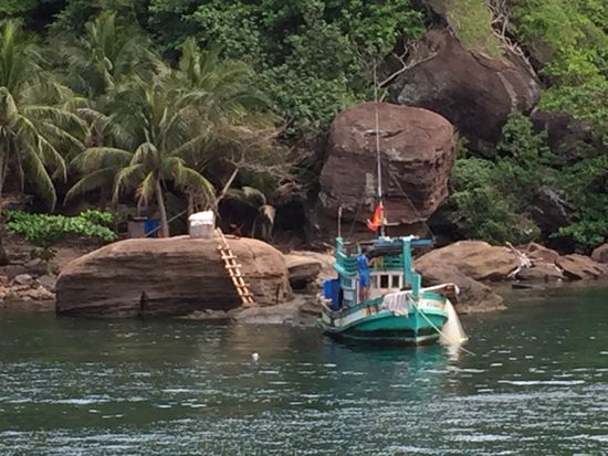 Erster Halt zum Tauchen und Schnorcheln. Wir waren etwas enttäuscht, wir haben schon Schöneres gesehen. Sehr wenige bunte Fische. Dafür mehr Jelly-Fisch .... Quallen. Machen nix, sind nur unangenehm.