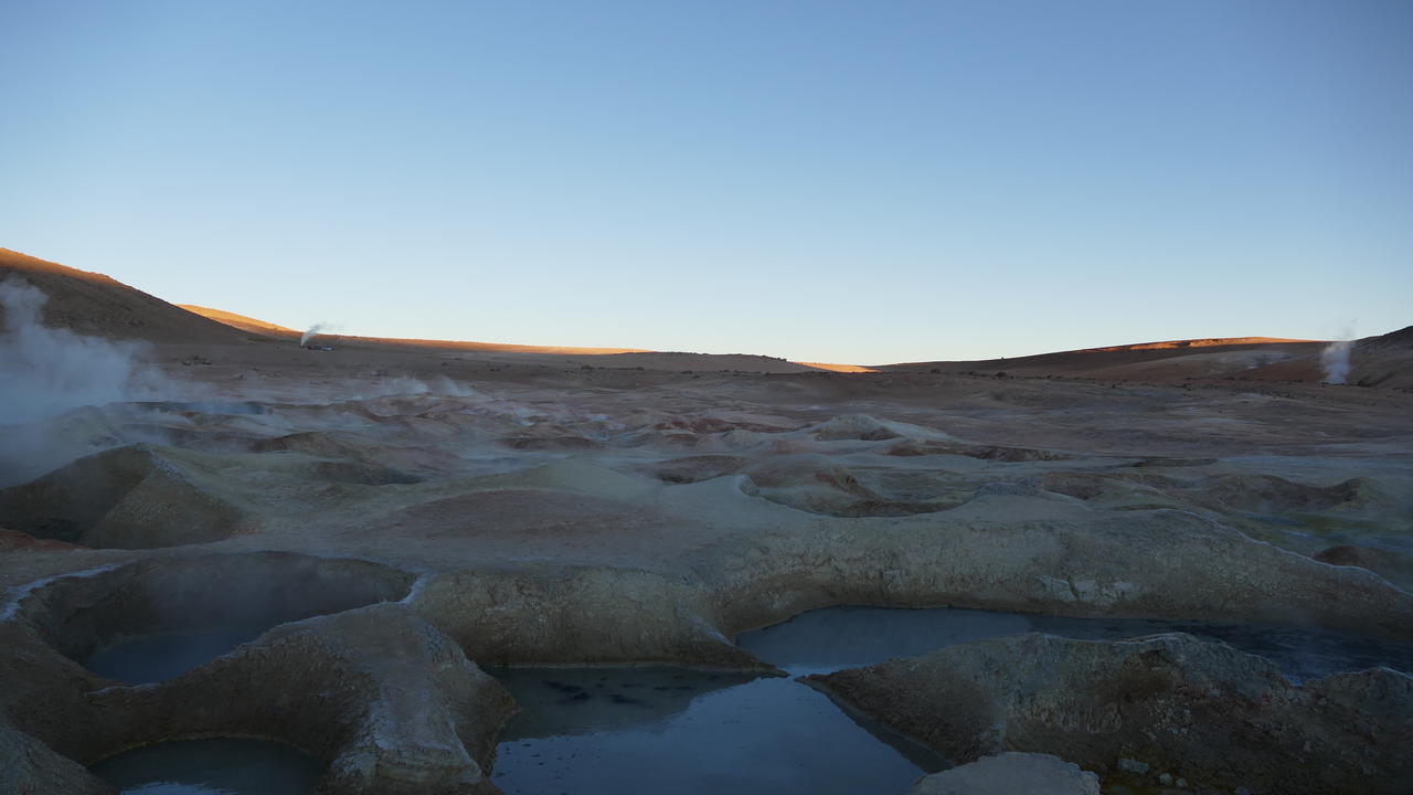 Noch im Dunkeln ging es am nächsten Morgen weiter. Während des ersten Stopps bei den beeindruckenden Geysieren, ging die Sonne langsam über dem Bergkamm auf. Lange konnten wir uns aber das tolle Naturschauspiel nicht anschauen, da es trotz der ersten Sonnenstrahlen immernoch empfindlich kalt war. Nächster Halt waren die heißen Quellen, in die sich praktisch alle Touris reinquetschen, sodass ich es vorzug die schöne Landschaft außerhalb des Beckens zu genießen. Den letzten Stopp machten wir an der Laguna Verde, bevor ich mit Tomer gegen 10 Uhr am bolivianischen Grenzposten herausgelassen wurde, während die anderen zurück nach Uyuni fuhren. Auf der Busfahrt zwischen den beiden Grenzposten ließ ich meine tollen Eindrücke aus Bolivien nochmal Revue passieren, die mir ganz sicher noch lange in Erinnerung bleiben werden.