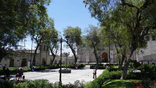 Am nächsten Tag nahm ich an der Free Walking Tour teil, um einen genaueren Eindruck von Arequipa zu bekommen. Umrandet von den drei großen Bergen Misti, Chachani und Picchu Picchu ist Arequipa die Stadt in Peru, die mir bisher am sympathischsten ist. Das liegt vermutlich größtenteils daran, dass sie nicht komplett von Touristen überlaufen ist und an dem super Wetter, was wir bisher hatten. Nachmittags entschied ich mich dafür noch eine Nacht länger zu bleiben, um am Folgetag das Kloster Santa Catalina (die Hauptattraktion hier) besichtigen zu können. Den Abend verbrachte ich in Gesellschaft mit Ramin und Peter aus Deutschland, die ich bei der Free Walking Tour kennenlernte.