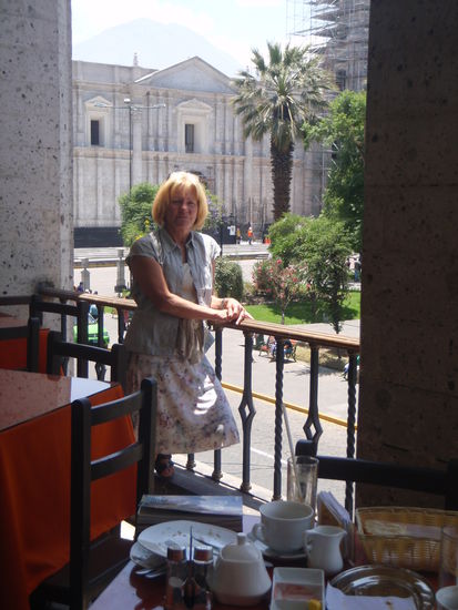 Wir bekommen gleich unser gebuchtes Zimmer, das liegt wie immer ziemlich nah im Zentrum. Frühstück gibt es am Plaza de Armas. Hier in der Stadt sind die Temperaturen zum ersten mal etwas angenehmer.