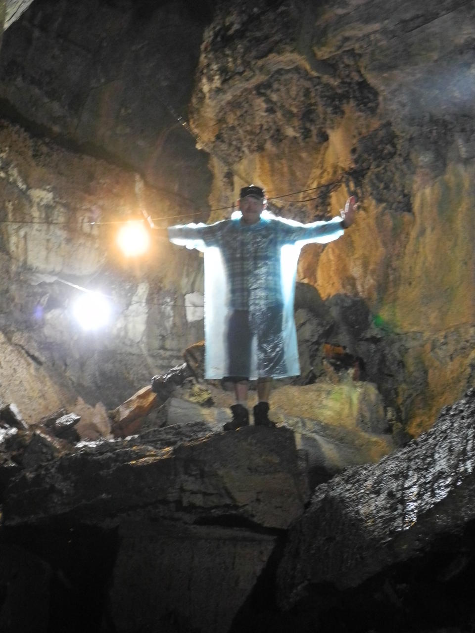 zeitweise auf dem Bauch. DIe Tunnel sind bei einem Vulkanausbruch durch den Lavafluß entstanden.