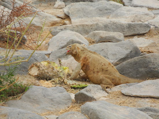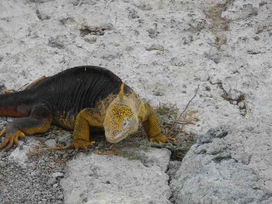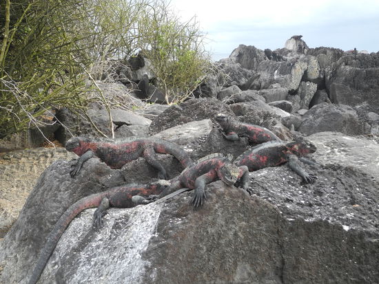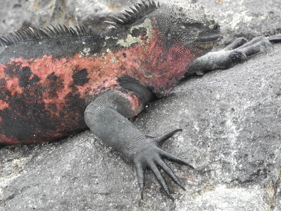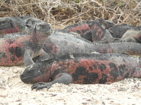 Die Insel Espanola ist die südlichste der Galapagos Inseln. Als wir an Land gehen müssen wir aufpassen, dass wir auf keine der vielen rot-schwarzen Echsen treten, die hier überall herumliegen.