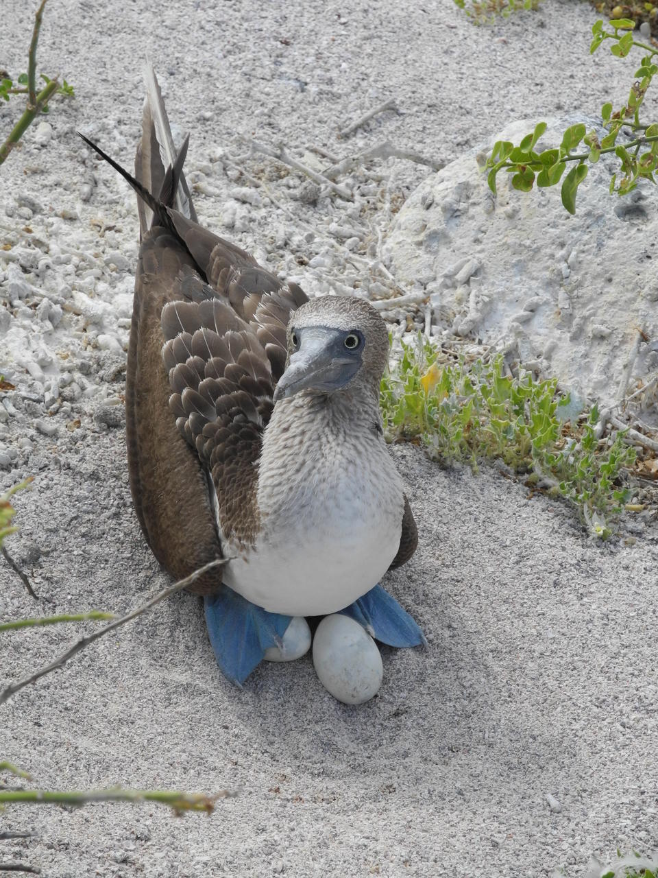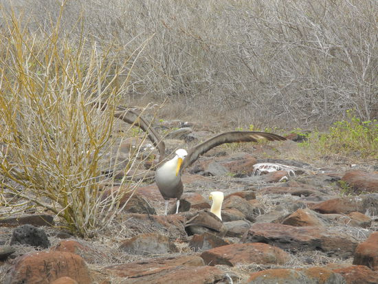 Wir gehen trotzdem weiter und treffen auf Blaufußtölpel beim brüten, im Hintergrund wird aufgepaßt, dass keiner zu nahe kommt.