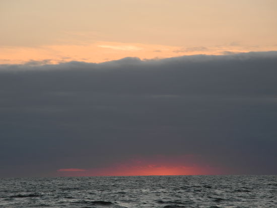 Nach einem schönen Sonnenuntergang verabschiedet sich die Crew von uns. Es war eine gelungene Fahrt, der Service und das Essen haben gestimmt, die Mannschaft freundlich und hilfsbereit.