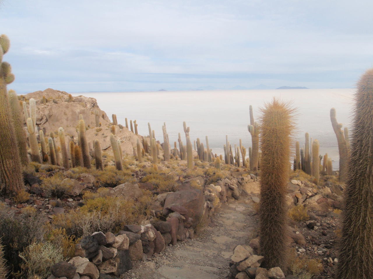 Wir trauen unseren Augen nicht, mitten im Salzsee eine Insel auf der riesige Kakteen wachsen und ein toller Blick über den See.