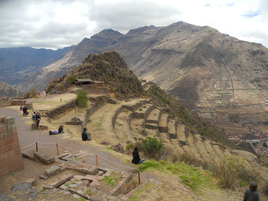 Die Inka Festung trohnt hoch über dem Dorf und ist mit vielen Terassen angelegt. Hier haben die Inkas in einer Höhe von ca. 2700 m weißen Mais und Getreide angebaut.