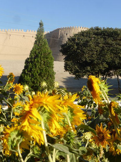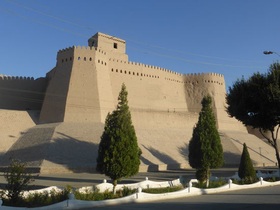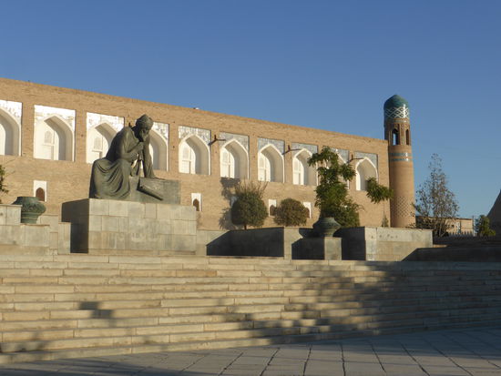 Neben dem Westtor steht ein Denkmal für al-Biruni, dem weltberühmten Mathematiker der mit Avicenna Chiwa zu Weltruhm auf wissenschaftlichen Gebiet gebracht hat. Die Unterhaltung mit einem Jungen Perser, den ich dort anspreche, hätte ich gerne noch fortgesetzt, aber es wird Zeit zum Duschen vor dem Abendessen.