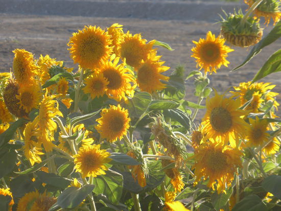 Daher zurück zum Nordtor und dann außen herum zu den Sonnenblumen, die ich bei Ankunft schon gesehen habe. Ein paar Mauerfotos und die Damen gehen zum Duschen während ich noch das Westtor in richtiger Beleuchtung fotografieren will.