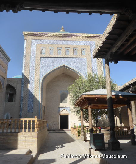 Pahlavon Maxmud (1247-1325) war ein berühmter Dichter, Ringer und ein Krieger, der keine Niederlage kannte. Das Volk nannte ihn >Pahlavon-Ata< - Heldenvater, er galt als der >Pir<, als der geistige Führer und Lehrmeister Chiwas.