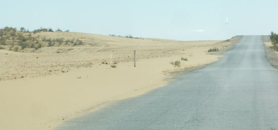 Die Straße ist miserabel ( ich muß wieder an den Welt-Artikel denken: "Seidenstraße ist eine poetische Umschreibung für eine löcherige Wüstenpiste, auf der betagte Busreisende sich hartnäckige Bandscheibenvorfälle zuziehen.")