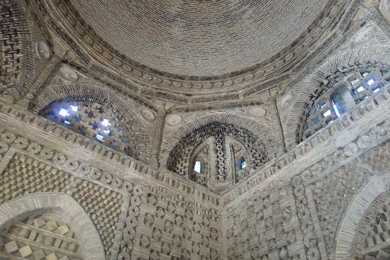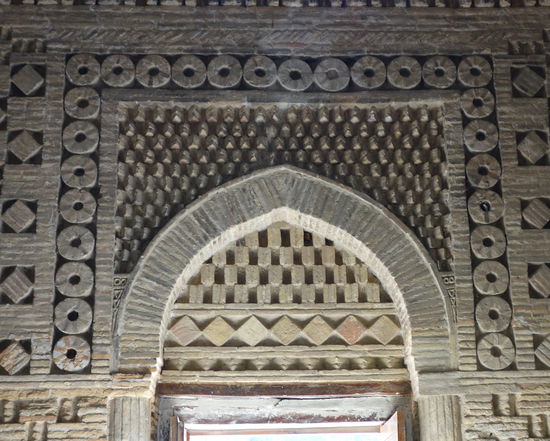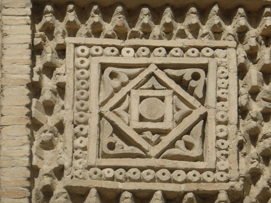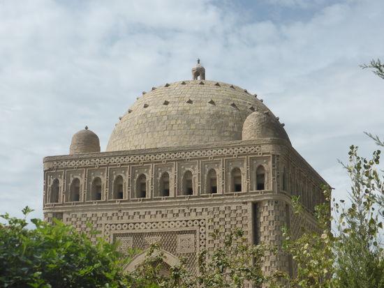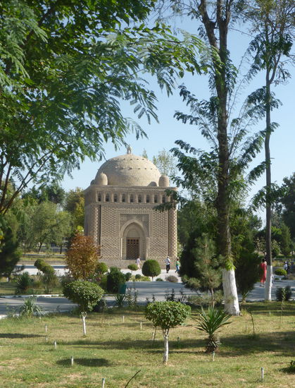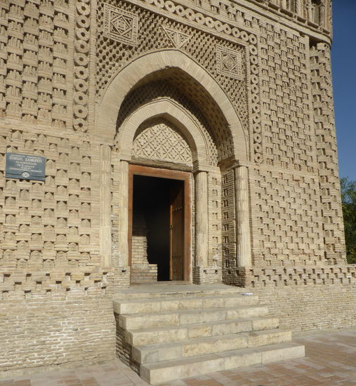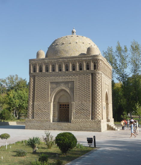 Das Samanidenmausoleum (Ende des 9. Jahrhunderts bis Anfang des 10. Jahrhunderts) in Buchara ist eine Familiengruft der Samanidendynastie, die der Gründer des Samanidenstaates Ismail Samani errichten ließ. Das Mausoleum besteht ausschließlich aus gebrannten, unglasierten Ziegelsteinen. Der quadratische Grundriß ist mit einer sphärischen Kuppel überdeckt. Der zentrische Charakter der Komposition wird trefflich durch die gleichwertigen Dekorationen an allen vier Fassaden betont, wobei auch die Seite, an der sich der Eingang ins Gebäude befindet, keine Ausnahme bildet.