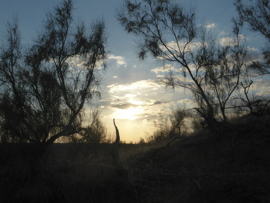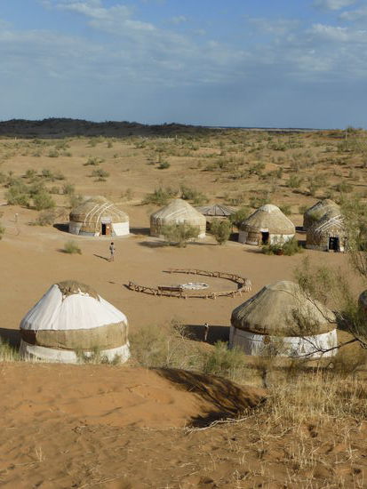 Ein kleiner Rundgang und dann stehen die Koffer vor unserer Jurte Nr. 1. Ulrike inspiziert die Sauberkeit der Matratzen, in dem sie darauf klopft. Es staubt fürchterlich, also packen wir die Mikrofaserschlafsäcke aus. Vor der Jurte schreibe ich dann in der Abendsonne noch Bordbuch. Dort wird natürlich auch vermerkt, dass die ausgeschriebene SolarDusche nicht existent ist - d.h. es ist ja soooo erfrischend morgens kalt zu duschen.