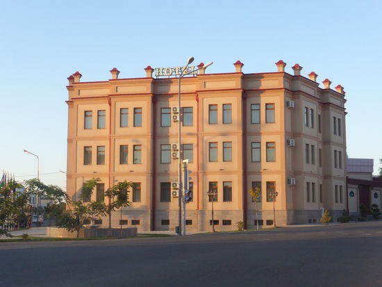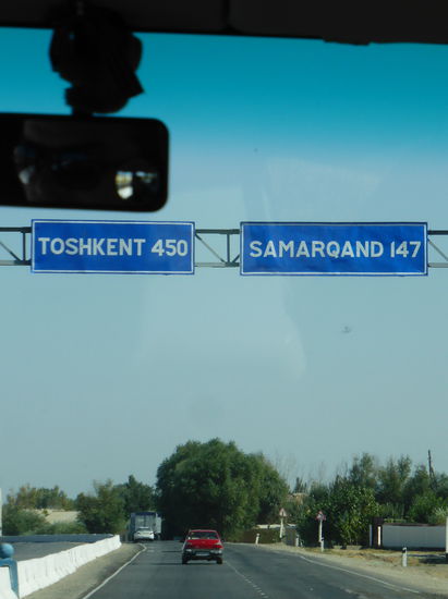 Die Straße ist zwar vierspurig und in der Karte als Autobahn angegeben, aber der Zustand ist bedeutend schlechter als die kleine Straße von Nurata. In der Ebene überwiegen wieder einmal die Baumwollfelder, die vor Samarkand in Obstplantagen übergehen. Die knapp einhundertfünfzig Kilometer Sambaautobahn ziehen sich endlos und wir erreichen das Hotel – wie ich vorhergesagt habe – erst gegen 17.30 Uhr.