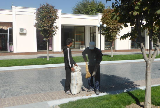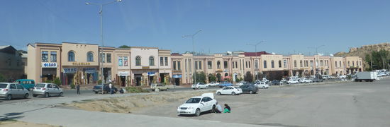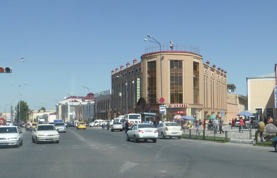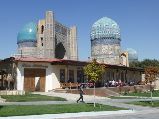 Vom Registan führt eine Fußgängerstrasse, die nur von Touristen-Golfcarts befahren wird, in nordöstlicher Richtung zur Bibi Xanom Moschee und dem gleichnamigen Mausoleum.