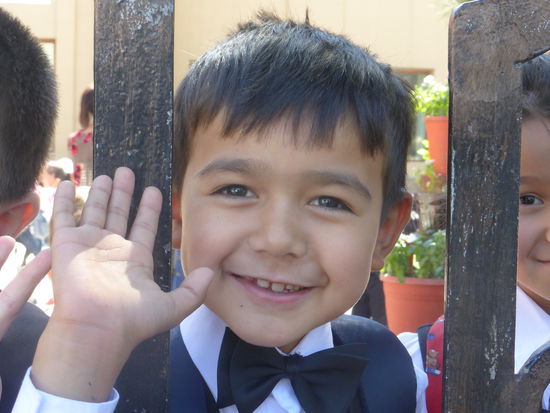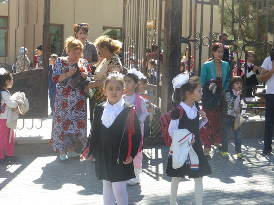 Auf der Straße liegt eine Grundschule, die gerade ihre Schüler entläßt. Mütter und evt. Kindermädchen holen die Ströpse ab. Hübsche freundliche Gesichter strahlen uns an.