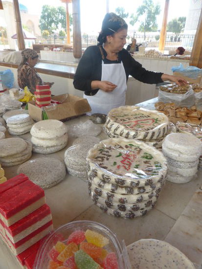 Nur wenige Stände sind geöffnet, und dort ist man bemüht uns mit Proben zum Kauf zu animieren. Nach M. sollen die Verkäufer alle auf den Baumwollfeldern eingesetzt sein. Verkaufsverhandlungen scheitern an der zu scharf angesetzten Untergrenze meiner Frau Ulrike, denn vorher hat die Masche mit dem Mengenrabatt bei zwei Püppchen schon gut funktioniert.