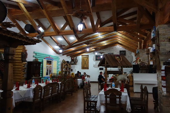Wir werden Gottseidank als Touristengruppe in die obere Etage, die zwar wenige ansprechend, dafür aber leiser ist, geführt. Auch dieser Saal ist groß und für entsprechend viele Busladungen vorgesehen.