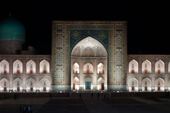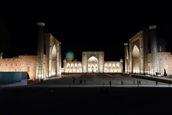 Nach ausgiebigem frühen Frühstück – WLAN gibt es nur in der Lobby, wie auch im Asia Bukhara – starten wir und werden mit dem Bus zum Registan (600m!) gebracht. Dort stehen drei Medresen unterschiedlichen Alters um einen quadratischen Platz.