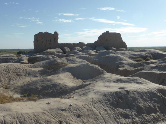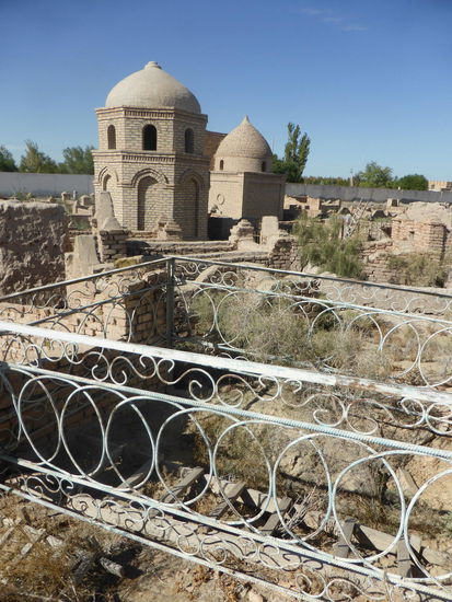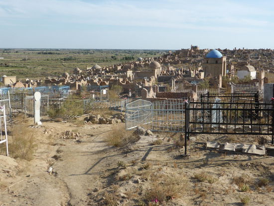 Direkt neben Nukus befindet sich der schaurig-imposante Friedhof von Mizdakhan, eine riesige Totenstadt, direkt an der Grenze zu Turkmenistan. Dieser weltweit atmosphärisch einmalige Ort scheint, wie die ganze Gegend, ein Geheimnis zu hüten, denn er wird in keinem Reiseführer oder im Internet auch nur ansatzweise erwähnt."