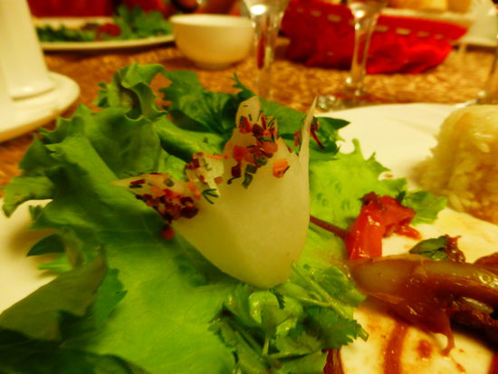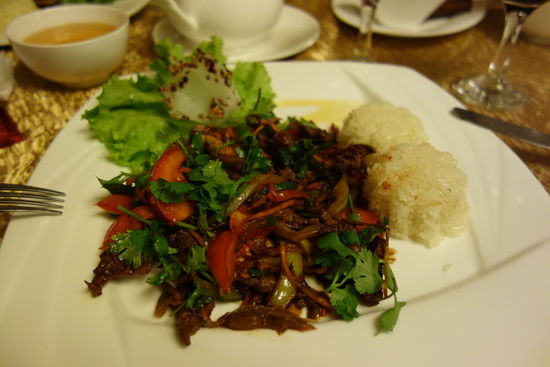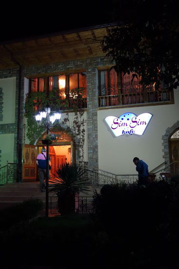 Zum Abschiedsessen geht es ins Café SimSim, auch das ist wieder ein Riesenschuppen mit mehreren Etagen. Wir werden als Gruppe auch hier in die obere Etage verbannt.