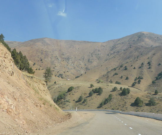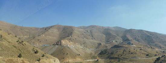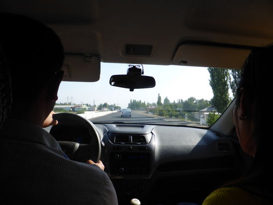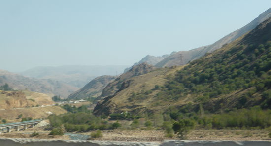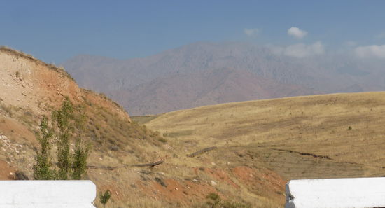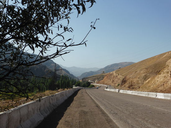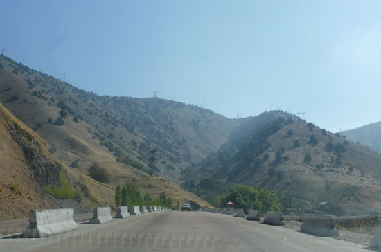 Dann geht es jedoch weiter an weniger attraktiven Plattenbauten vorbei in die Berge. An der Provinz- oder Stadtgrenze von Taschkent werden wir dann zum ersten Mal an einem Kontrollpunkt angehalten. Feruza erklärt uns das: da unser PKW ein Kennzeichen aus Fergana hat, will man wohl wissen, wer was wo machen will. Nachdem wir als Touristen 'identifiziert' sind, dürfen wir weiterfahren.