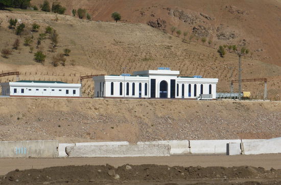 Zur Zeit baut man eine Bahnstrecke von Taschkent ins Ferganatal. Überall wird gebaggert, gebaut und gewuselt. Ein erster Bahnhof steht schon.