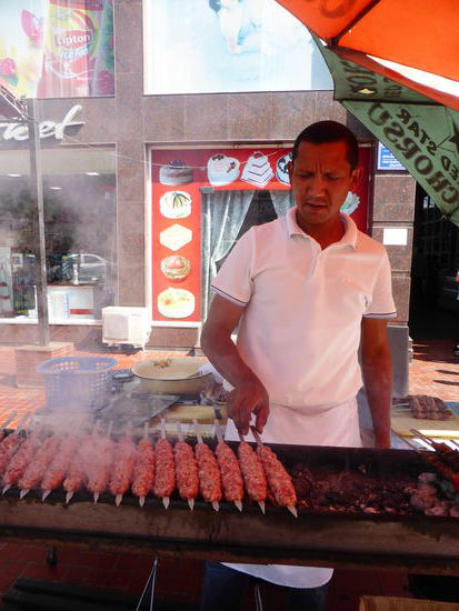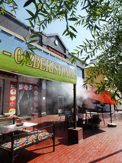 In Kokand machen wir dann eine Mittagspause, wo unser Fahrer und Feruza eine Kleinigkeit essen und wir uns mit grünem Tee begnügen, obwohl die Spiesse verlockend duften.