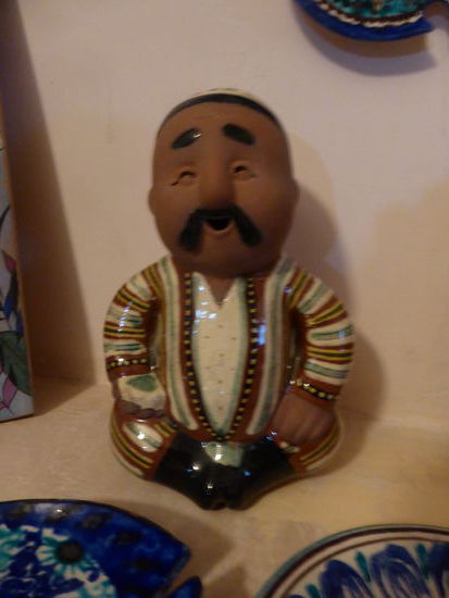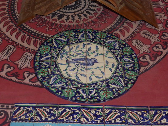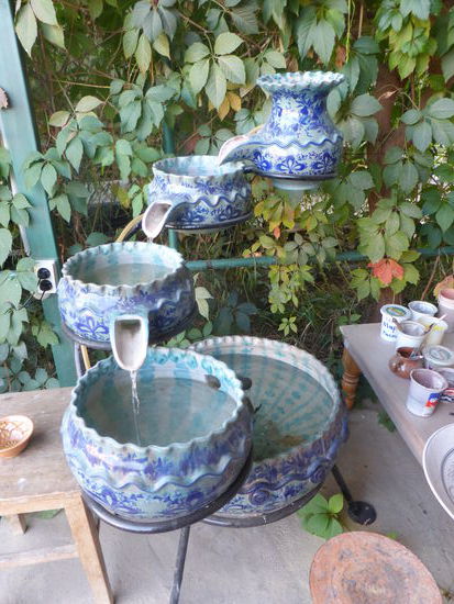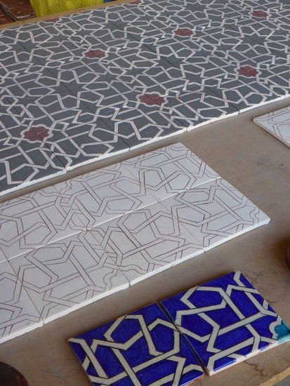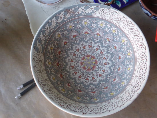 Den Herstellungsprozeß kennen wir natürlich, aber die Produkte sind überzeugend. Als Grundfarbe dient Blau, gewonnen aus der Asche eines Strauches, die mit Wasser hart abbindet und dann gemörsert wird und dann als Glasur auf die Keramik aufgebracht wird.