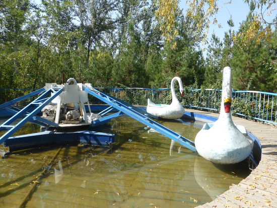 Angeschlossen ist ein Vergnügungspark mit diversen 'Fahrgeschäften', die auf uns alle recht nostalgisch wirken. Die Seilbahn auf die Hügelhöhe, von der man eine gute Aussicht auf die Stadt haben soll, ist - ich weiß es ja - nichts für meine Frau Ulrike, deswegen lassen wir sie aus.