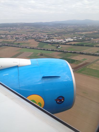 Das Einchecken ist noch einmal besonders usbekisch, wir gehen eine Treppe hinab und steigen in den Shuttlebus, als er voll ist, fährt er los und dreht nach 50 m um 180 Grad, um vor dem vor der Tür stehenden Flugzeug wieder anzuhalten. Wir fliegen natürlich westwärts und erleben daher stundenlang Dämmerung – als erstes erkennbares ist Wolgograd zu sehen. Wir bekommen ein Wasser, und nach Erreichen der Flughöhe, gibt es dann um gegen 7.45 Uhr ‚beef or chicken’ – wir verzichten und nehmen den restlichenTeil als Frühstück.