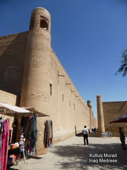 An der West-Ost-Hauptstrasse liegt die Medrese Kutluq Murad Inaq - sie wurde 1804-1812 als erste zweistöckige Medrese nach Vorbilder aus Buchara errichtet und besticht für mich durch die enorme Vielfalt an Mustern aus den verwendeten Backsteinen