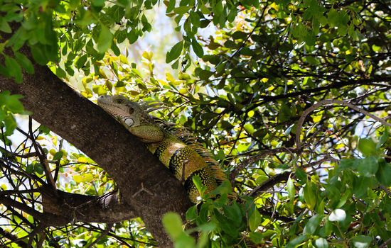 Mit einem Tenderboot wurden wir mit vielen anderen Gästen zur Cococay Insel gefahren. Wir hatten von da an Zeit bis um 17 Uhr die Insel zu erkunden. Als wir angekommen sind stand gleich am Anfang der Insel ein Markt von Einheimischen Frauen mit allerlei handgefertigten Artikeln, es war alles so wunderschön bunt (aber aufgepasst, hier kann man nur mit Bargeld bezahlen). Auf der ganzen Insel liefen Warane (Echsen) rum, die mehr Angst vor uns als wir vor ihnen hatten. Ich hatte anfangs auch ziemlichen Respekt vor ihnen aber sie wollten sich nur nett sonnen und keine Fragen der Paparazzi beantworten . Wir fanden einen der Kumpels sogar auf einem Baum. Der wollte sich wohl verstecken.