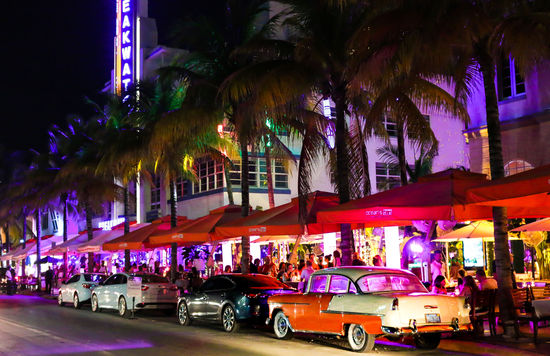 Nach einer halben Ewigkeit in der Mall liefen wir wieder zurück zum Hotel. Wir verstauten unsere Einkäufe im Zimmer und machten uns strandfertig um noch ein paar Stunden am Miami Beach uns die Sonne auf den Pelz scheinen zulassen . Die Atmosphäre war phänomenal! Im Hintergrund spielte Musik, die Menschen waren offen und freundlich, wir machten sofort Bekanntschaft mit einem einheimischen Pärchen. Und wie konnte es nicht anders sein, wir zogen uns erst mal einen schlichtweg "miesen Sonnenbrand" zu. So brutzelten wir weiter, bis die Dämmerung anbrach. Wir machten uns auf in unser Hotelzimmer um uns für den Abend fertig zumachen, denn auf uns wartete der Ocean Drive bei Nacht. Wir suchten uns ein Lokal gehobener Klasse mit super Musik und einer sehr netten Bedienung. Es gab Pizza und leckere Cocktails. Es ist schon wirklich unglaublich, was für Auto am Straßenrand des Ocean Drives stehen und wie viele Menschen sich hier abends tummeln. Aber aufgepasst am OD muss man extra Tax bezahlen, wenn man im Restaurant sitzt. Also nicht wundern, wenn die Rechnung etwas höher ausfällt obwohl Ihr nur Pizza und Cocktails bestellt . Morgen beginnt unsere Rundreise, für die wir fit sein wollten, deshalb verließen wir den Place to be nicht allzu spät.